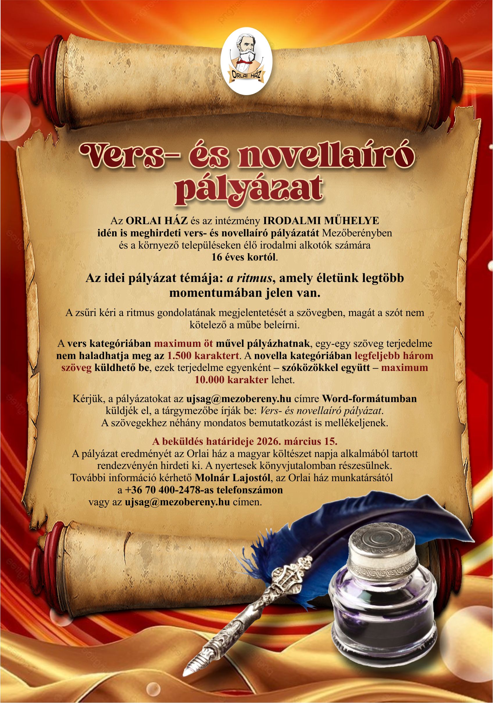 Vers- és novellaíró pályázat